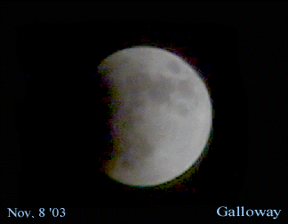 Lunar Eclipse Date: 11-08-03 Approx. ~ 8:00pmEST Animated GIF -- Built from 8 images Shot with a Sony Digital Camera in Indianapolis, IN |