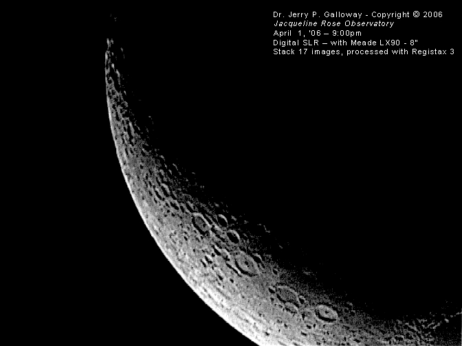 Crescent Moon April 1, 2006 - 9:00pm North is lower-right