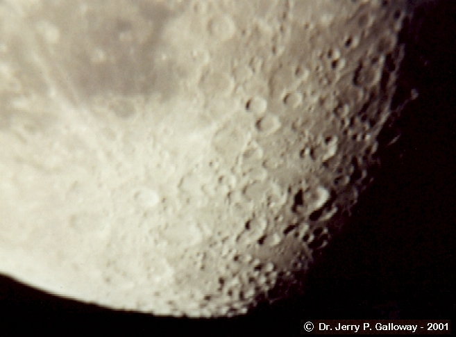Closeup Shot from my driveway... Pentax Automatic. Film: Kodak 100 speed Date: 08-26-01 At home: Valparaiso, Indiana. Eyepiece Projection with my 9.7 mm plossl. - Telescope: LX200 - 10" 5 seconds - approx. 257X