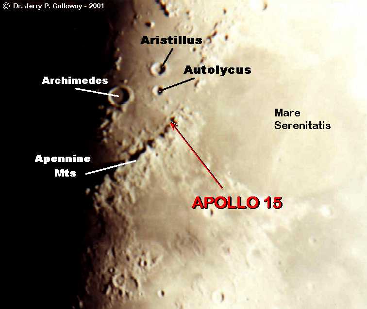 15 Landing Site Shot from my driveway... The camera is Pentax Automatic. Film: Kodak 100 speed Date: 08-26-01 At home: Valparaiso, Indiana Eyepiece Projection with my 26mm plossl. Telescope: LX200 - 10" 2 seconds - approx. 100 x Be sure to see the labels. |